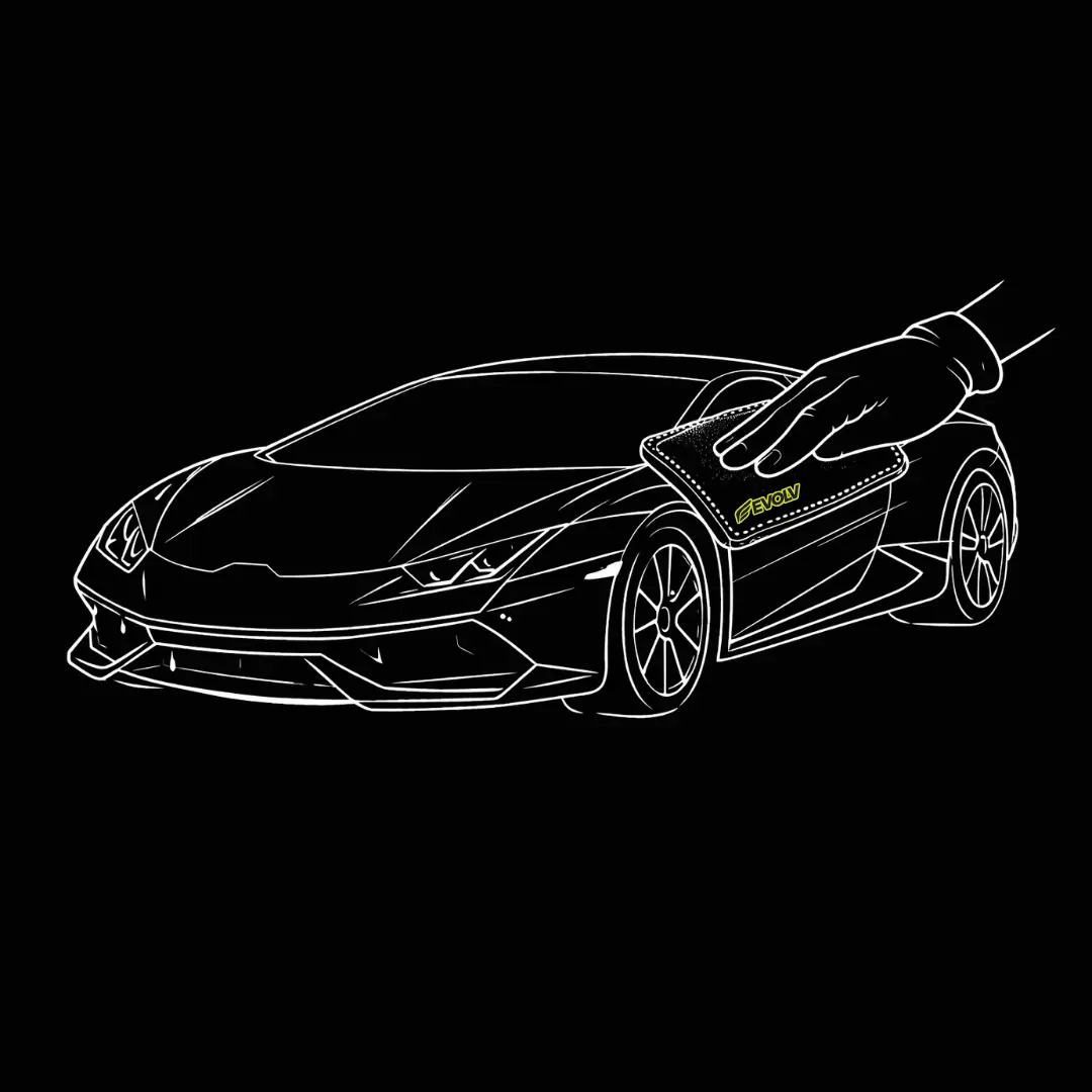 Allow the coating to flash briefly until slightly tacky or rainbow-like. Gently buff with a clean EVOLV 2WAY microfiber towel to remove excess and level the coating.